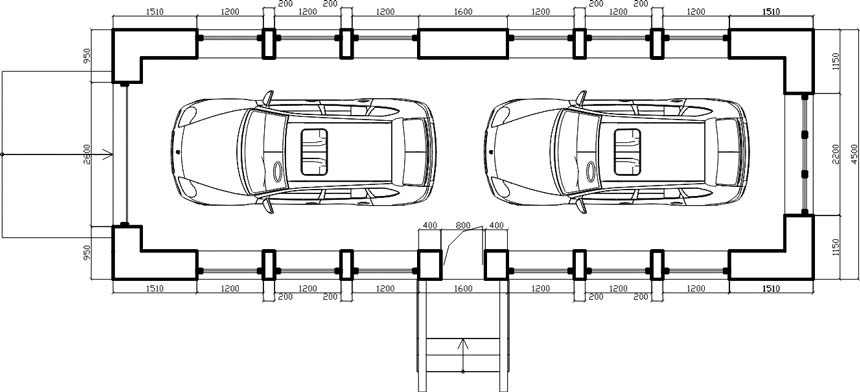 Более привычным размещением автомобилей в двухместном гараже является взаимопараллельное. Однако, если для квадратной постройки места на участке недостаточно, либо участок имеет вытянутую прямоугольную форму, лучше выбрать проект гаража, предполагающий последовательное размещение машин.