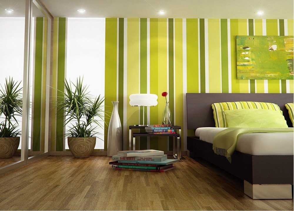 Если большая часть внутреннего убранства комнаты однотонная, можно применить растительный орнамент. С фисташковым принтом можно сделать одну из стен, обивку мебели или портьерные шторы. Это освежит интерьер.