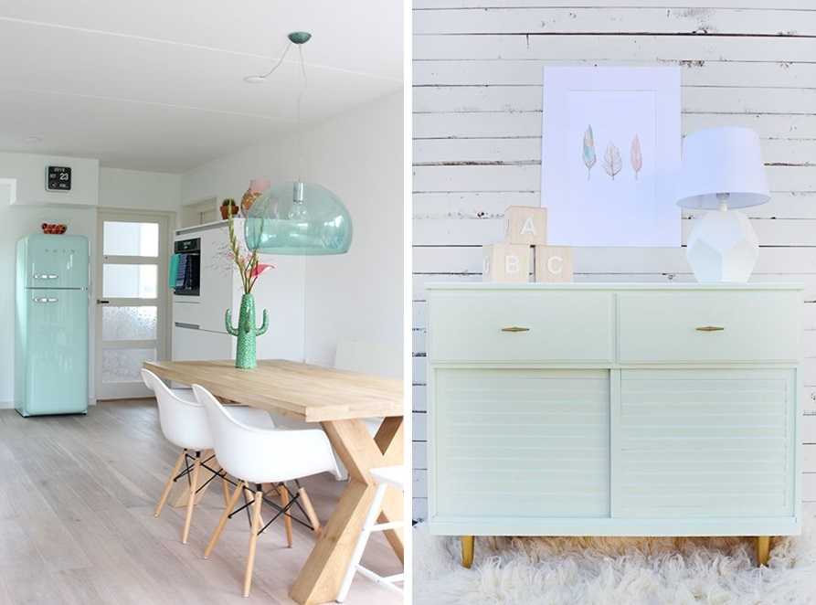 Сочетание цвета мяты с белым успешно используется дизайнерами для создания легкости и свежести в помещении.