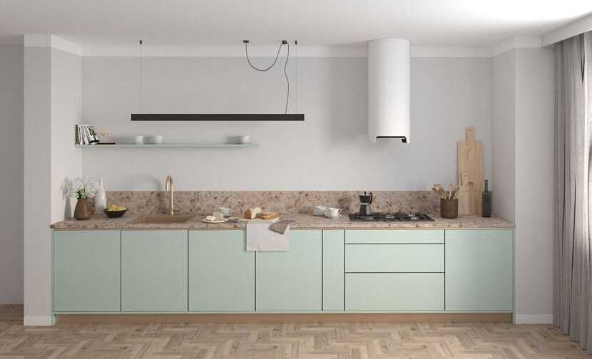 С какими цветами сочетается мятный цвет в интерьере кухни?