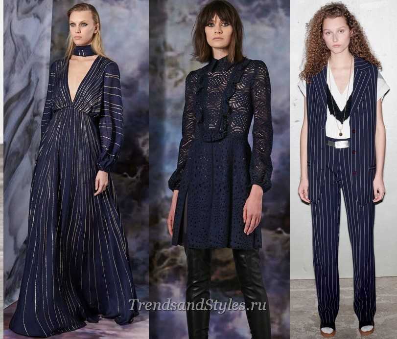 Глубину оттенка подчеркивают серебристые и золотистые тона. Поэтому так часто в вечерней моде 2019-2020 встречаются наряды с блестящей вышивкой на темном фоне.
