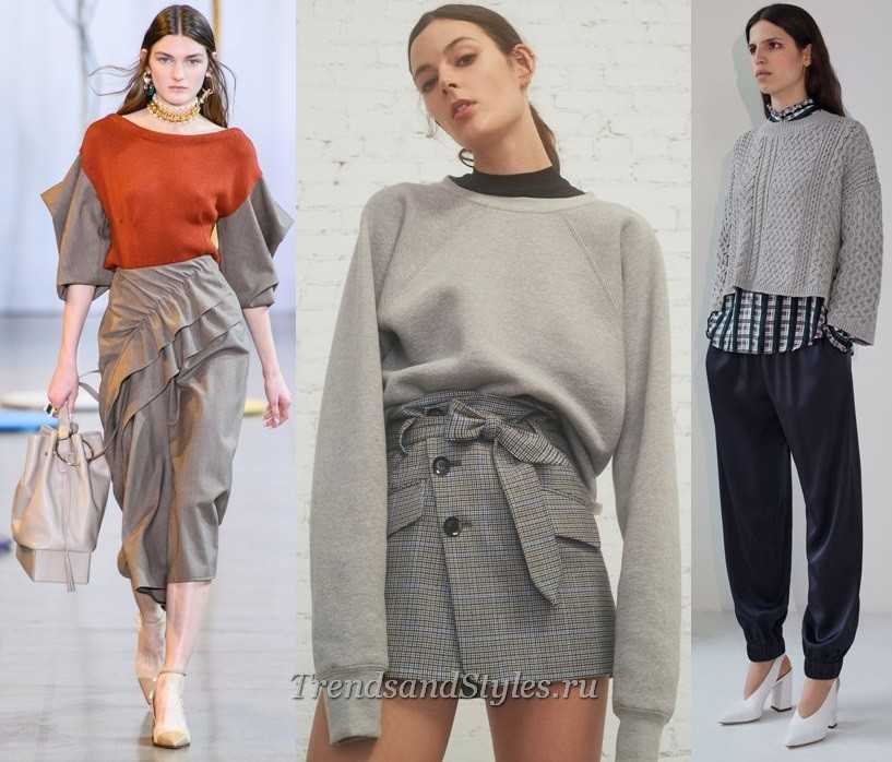 Классический серый рекомендуется совмещать в осенне-зимних аутфитах с зелёным, синим, голубым, фуксией, светло-розовым. Также остается актуальным летний тренд на комбинацию серого и желтого.