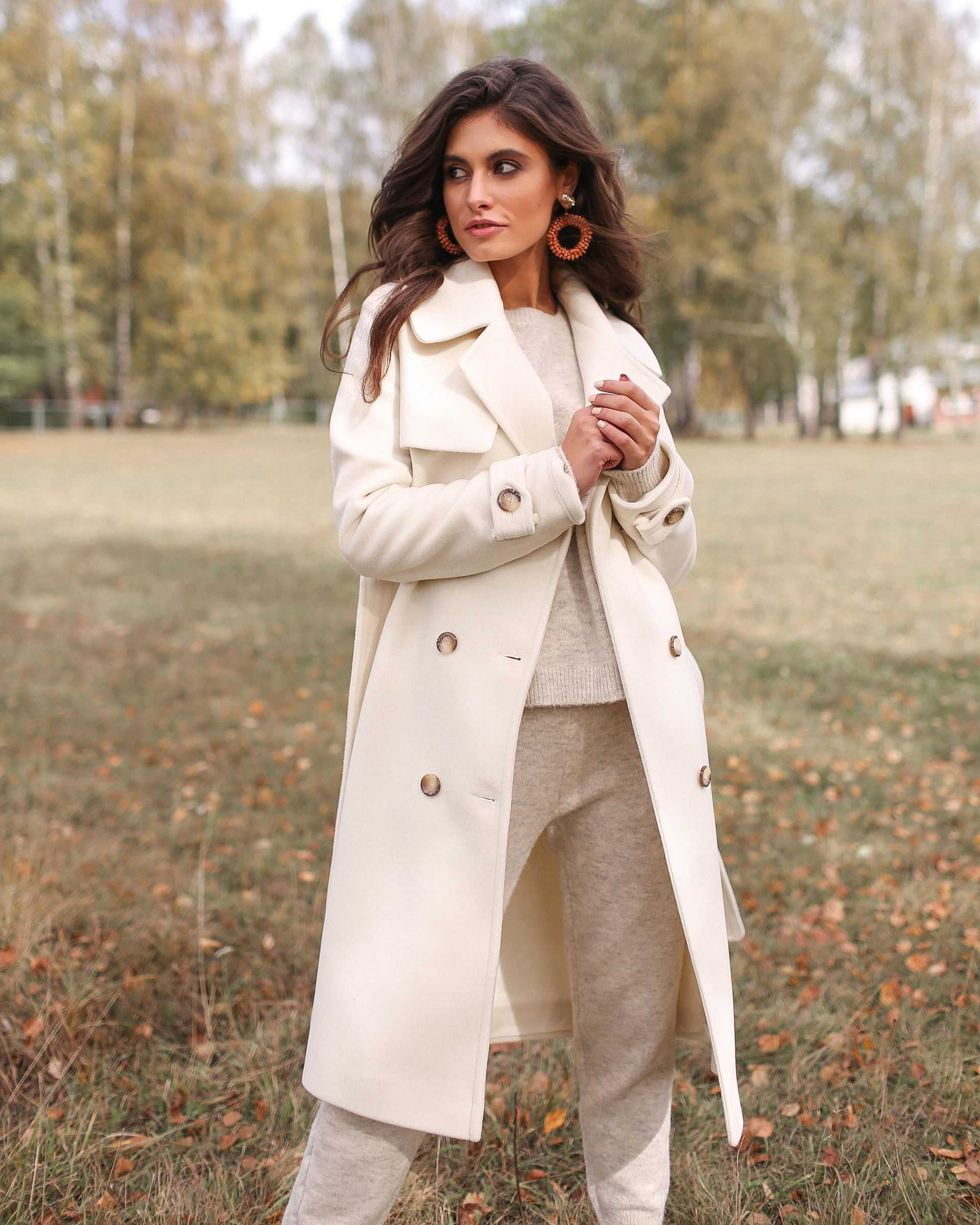 - Обладательницы темных волос запросто могут себе подобрать уникальные пальто и полупальто в этом нежном цвете, чтобы подчеркнуть свою природную привлекательность и сыграть на полном контрасте. Блондинки и рыжеволосые красавицы тоже будут чувствовать себя уверенно в молочных оттенках, если они с розовинкой или с серым отливом. Тогда на первый план выходит женственность, чувственность и романтизм, такие модные в этом наступающем осеннем сезоне.